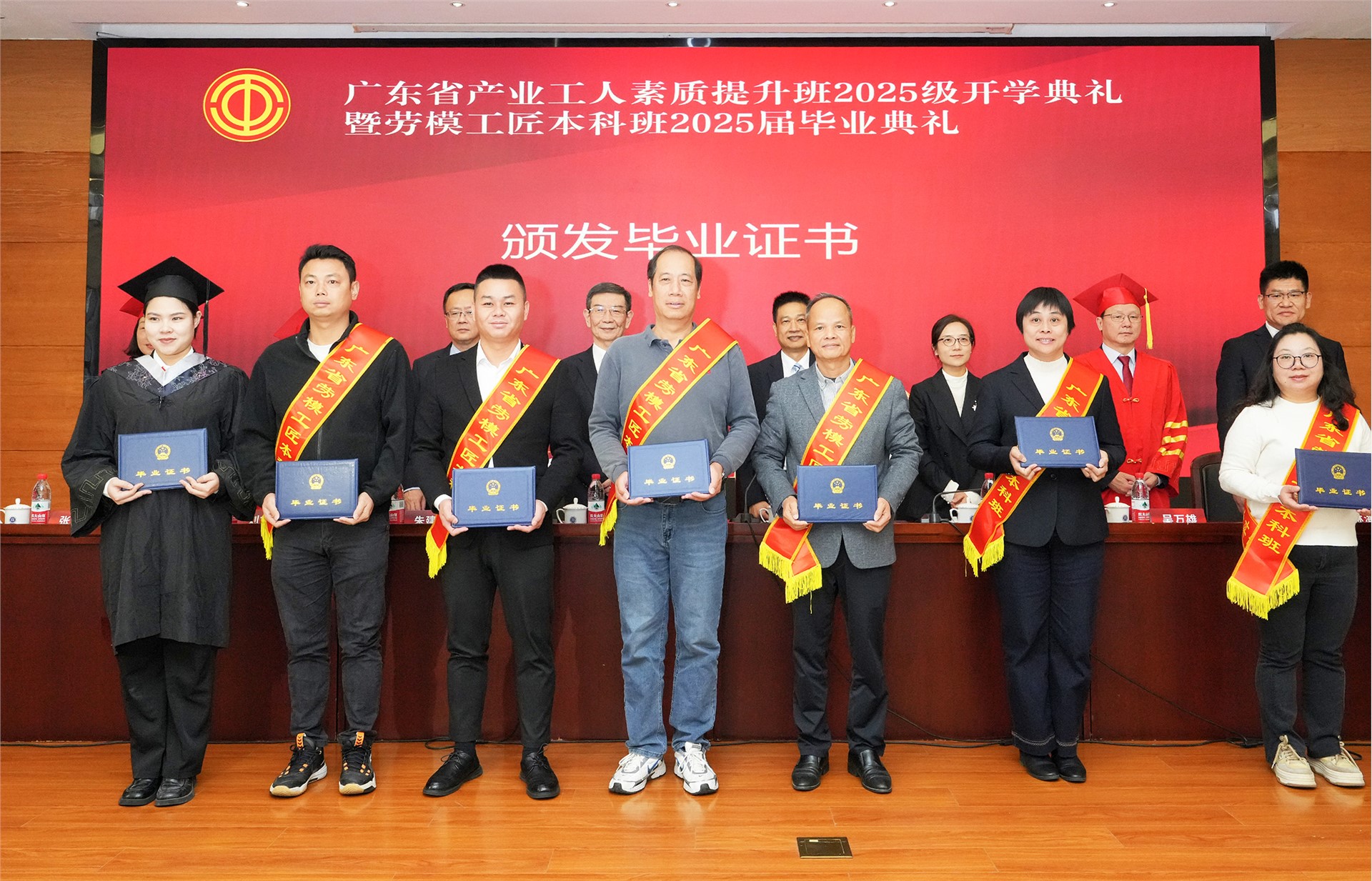 11月19日,广东省产业工人素质提升班2025级开学典礼暨劳模工匠本科班2025届毕业典礼在广东南华工商职业学院举行。省人大常委会党组副书记、副主任,省总工会主席黄宁生讲话,省总工会党组书记、常务副主席温文星主持,省教育厅党组成员、副厅长朱建华,省总工会党组成员、副主席袁子雅等出席活动。